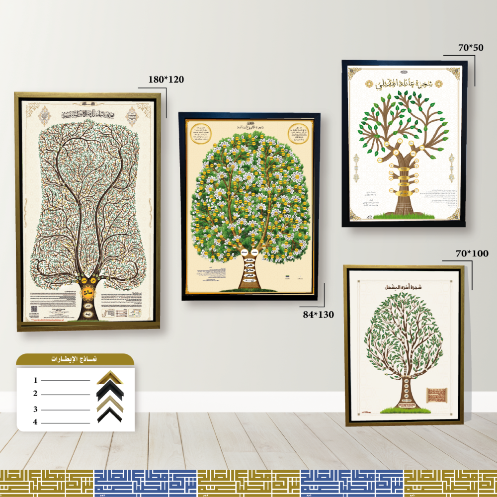 طباعة شجرة العائلة من الأمور المهمّة بالنسبة للعديد من الأشخاص الراغبين بمعرفة تاريخ عائلاتهم لعرضه والافتخار بأصلهم وسلالتهم العريقة ، نوفر تصميم خاص لذائقتك بكل احترافية و بمقاسات متعددة على الجلد الفاخر